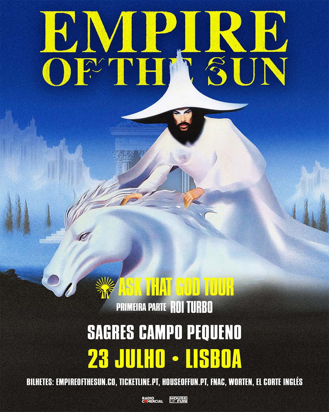Os próximos espetáculos ao vivo dos EMPIRE OF THE SUN prometem ser um verdadeiro espetáculo de som e visão, com um alinhamento que incluirá a sua discografia multiplatinada. Os fãs poderão ouvir novas faixas de “Ask That God”, juntamente com sucessos intemporais como "Walking On A Dream", "We Are The People", "Alive" e "High and Low". Nesta digressão, ao levar para a estrada o espetáculo ao vivo em grande escala, a banda transformará estas salas em experiências audiovisuais totalmente imersivas.